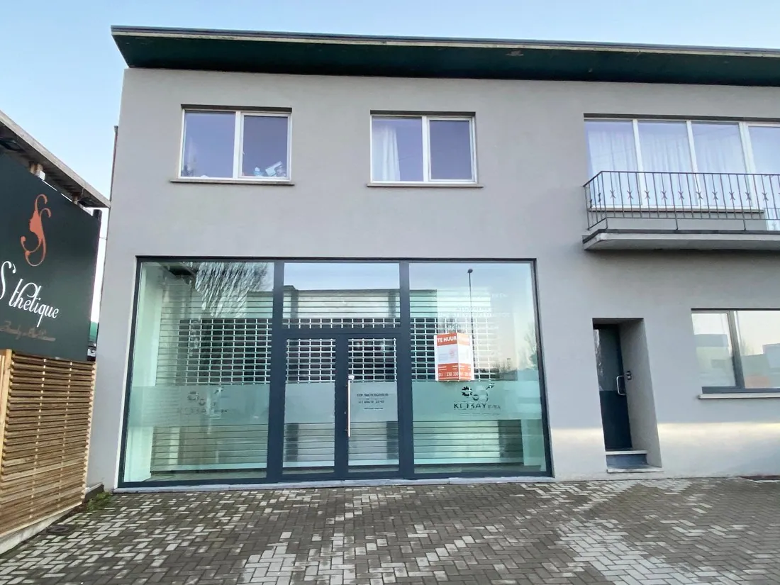 De handels- of kantoorruimte heeft een oppervlakte van +/- 85m². Er is ook een apart toilet en keuken voorzien.